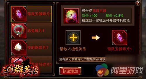 达到65级或以上的玩家在新版本中将可以开启饰品熔炼和饰品铸造功能,它们可是各位主公提升饰品品质的重要方法。先说饰品熔炼:玩家可以使用未强化和雕琢的橙色饰品熔炼成红色饰品碎片,而且玩家可以自由选择熔炼成哪种红色饰品碎片。是不是很合算?不过,每次熔炼需要消耗250个元宝,如果红色饰品碎片还不是很多的玩家可以要先考虑好了。还是在保证红色饰品碎片有一定数量能够合成出红色饰品的时候,再进行熔炼吧。