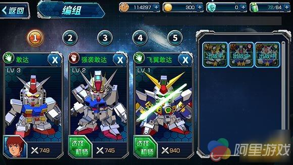《SD敢达强袭战线》是一款动作手游,操作模式依旧是玩家们熟悉的摇杆加技能组合键的模式,战斗则采用的是三位一体式的模式。由于每架敢达都有着自己的属性和定位,而这些属性,都决定着敢达之间的相生相克,在游戏中,简洁明了的石头剪刀布让人一目了然。采用三位一体这样的战斗设定,就提高了游戏战前的策略性,玩家们需要根据关卡BOSS的属性,来搭配最佳的通关组合,这样就能提高推图的效率。