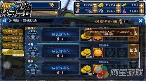 资源战场顾名思义,通关后给的奖励都是资源,其中包括钢铁,能源,合成材料以及绿哈罗,哦不对,应该是金币。战场序号越靠后难度越高,理所当然的,给的奖励也就越好,抛开那些有点暧昧的“少量”“中量”不看,光看绿哈罗的星级就能大概知道奖励的增幅了。除此以外,站场内一般都是有三个关卡,我方机体一对多也是常态了,要是体力不支的话可以拉上好友们的爱机一起战斗。