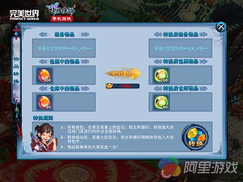 值得一提的是,若玩家在“金丹换骨”过程中涉及内外功门派的互转,可以在临安城老板处使用“物品转换”功能,对包裹和仓库内的器印、宝石、铭文道具的进行转换,可以说免去了玩家的后顾之忧。与此同时,玩家的奇经八脉、双剑属性、帮派修炼、飞羽、家具、饰品等属性都将自动进行内外功转换,境界点、忘尘技能等级、及染色所用材料将全部返还给各位大侠,在临安城NPC处即可领取返还道具,对其等级进行重新分配。