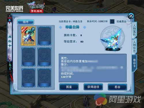 杨过变身卡”这类道具,而本次加入的易容卡系统,可以说是对变身卡的一次大升级。现在,通过师门任务或指定副本,各位大侠可获得各式各样的易容卡,使用易容卡不仅可以改变人物形象,更可以在变身期间大幅提高人物的各项属性。
