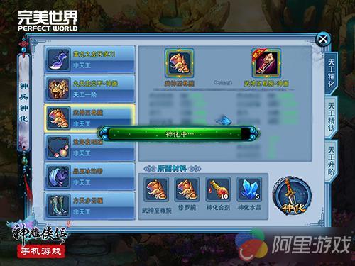全新天工开物系统上线后,各位大侠通过挖宝活动会有一定几率找到这6件天工铸材,并通过后续任务为角色目前的6件装备进行神化,神化后的装备不仅拥有全新的名称、外观,更会为全面提升角色的各项属性。