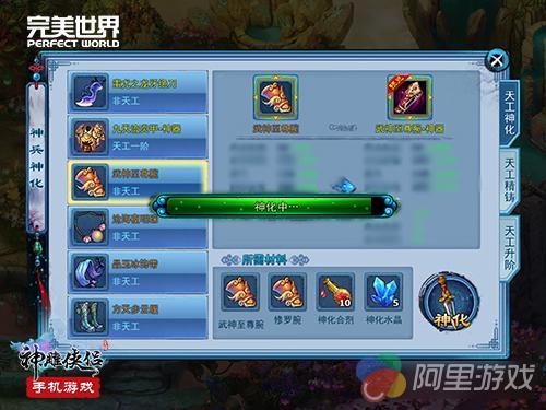 在找到天工铸材后,在包裹内点击,即可将材料存至收藏地——天工阁,此时各位大侠可以前往绝情谷找到一位名叫“诸葛千机”的大师帮忙鉴定此物,并使用天工铸材为你的装备开光纳福,神化觉醒为“天工装”。需要提醒各位大侠的是,由于天工宝物所蕴含威力巨大,一般的装备可是承受不了的,只有等级大于或等于100级(武器为三阶光武)的装备才可以进行神化操作呦~