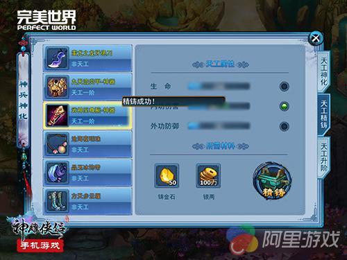 神化觉醒,赋予了装备更强的力量,而精铸和进阶,是进一步激发“天工装”潜能,提升其强度的重要手段。通过精铸可以提升“天工装”的属性值,进阶则可以提升基础属性和属性值上限,并为装备赋予额外的特殊效果,将让各位大侠在华山论剑、比武和副本活动中一展雄风!