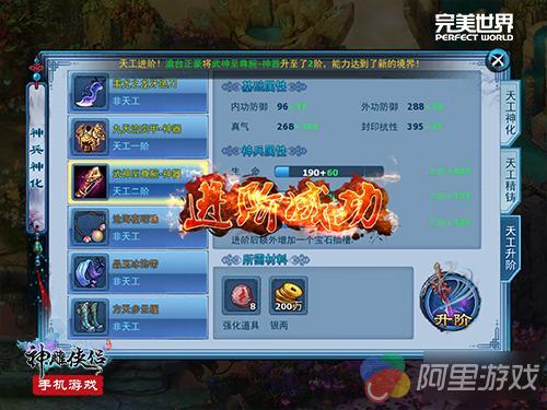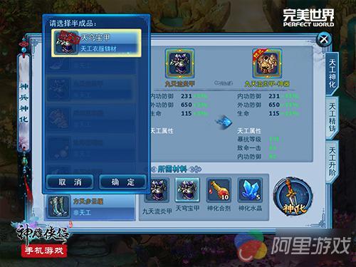 装备神化:在挖宝任务中,各位大侠会有一定几率得到6种天工铸材,分别对应了角色6个不同部位的装备。找到天工铸材后,在包裹内点击铸材,即可将材料存至收藏地——天工阁,此时各位大侠可以前往绝情谷找到一位名叫“诸葛千机”的大师帮忙鉴定此物,并使用天工铸材为你的装备开光纳福,神化觉醒为“天工装”。神化后的装备不仅拥有全新的名称、外观,更会为全面提升角色的各项属性,为你的战斗带来更多帮助!