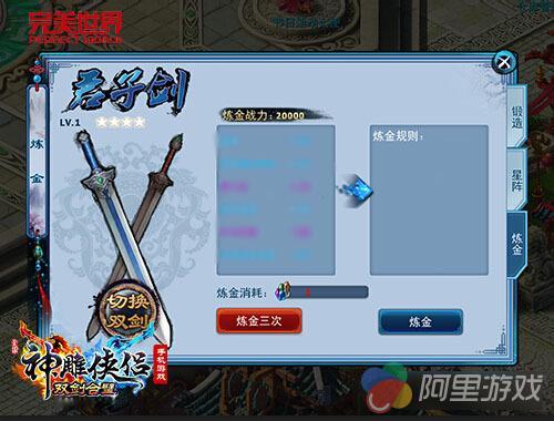 “双剑合璧”玩法开启后,各位雕友可以用手中的材料分别对君子剑、淑女剑进行锻造、布阵以及炼金。锻造功能可以提升双剑等级,为角色提供相应的基础属性加成,使用布阵功能, 则会对锻造生成的基础属性按百分比再次提升其效果。