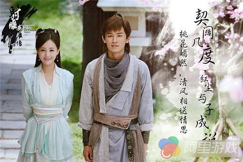 “桃之夭夭,灼灼其华”,桃花自古时便被赋予了可以代表爱情与生机的文化符号,“桃花岛”也是《射雕英雄传》中的情之归处。近日,新版《射雕英雄传》电视剧曝光了一组桃花岛上的剧照,由《射雕英雄传3D》代言人杨旭文、李一桐分别饰演郭靖与黄蓉桃花影下眉目含情,黄药师(苗侨伟饰)玉箫声声凌空起,绵绵的情意相隔屏幕渗透人心,令广大《射雕英雄传3D》手游玩家调侃:“金庸男子哪家强?桃花岛上痴情郎。”