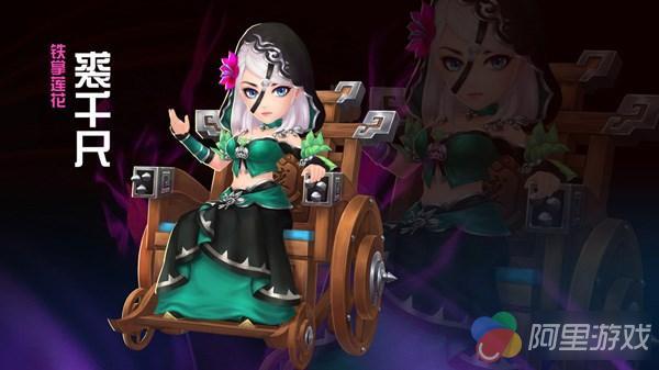 游戏中的裘千尺继承了书中泼辣怨毒的性格,主动技能“黑枣核”源自书中鳄鱼潭下求生技能,召唤7枚黑枣核射向目标。二技能怨毒结界在吟唱一秒后自身位置设置结界,敌人靠近结界会被击飞;三技能厄运诅咒能够对周围目标施加诅咒,15秒后造成伤害,配合一技能黑枣核,若诅咒期间目标受到枣核攻击,则伤害会随受击次数大幅提升。