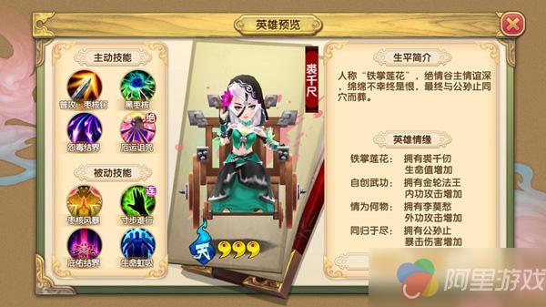 清新淡雅的程英武学上受黄药师衣钵,一曲万里无波既可伤害敌人,也可提升队友伤害,并治疗全队;同样能够以内力催发出桃花浪治疗周围队友,配合睡眠效果可以说是非常强力的辅助英雄。