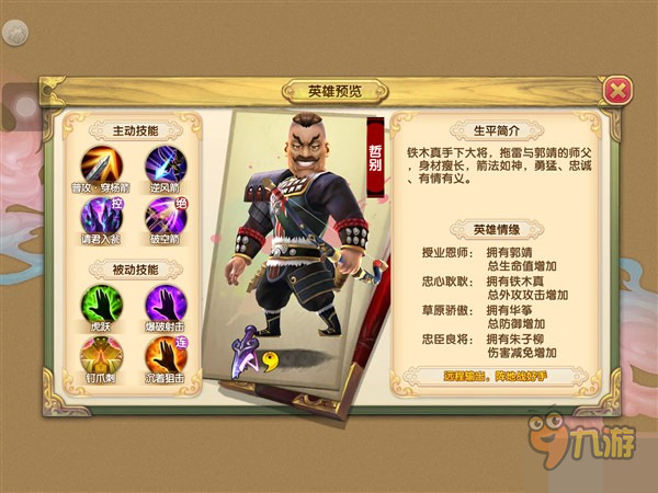 这套阵容中哲别、梅超风、黄蓉都有不错的控制能力,郭靖的攻击能力也补充了阵容的输出。哲别与郭靖搭配不仅可以激活情缘增加属性,切换时被动能力也会增加哲别的输出能力!