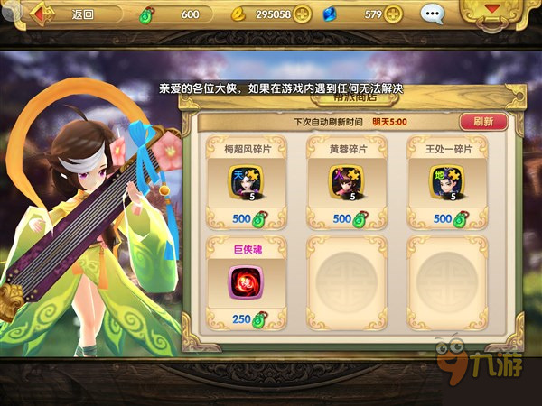 在进入游戏后系统会赠送我们一名人属性的英雄-萧别离,这个英雄足以应付前期的各种情况,因此在游戏初期我们不必花费太多心思在人属性英雄上。直到后期我们在帮派商店中兑换出黄蓉后,再大力培养黄蓉即可(每日帮派祭拜,金、银、铁全部祭拜的话只需6天便可兑换黄蓉)。