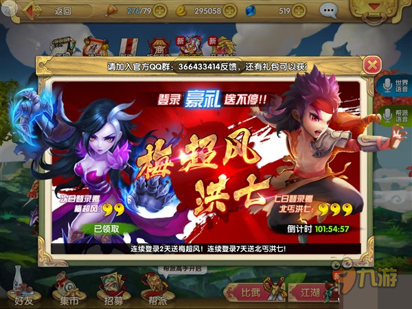 到这里我们的天地人三属性都已经有了不错的英雄,在剩余一个位置的选择上,小编推荐选择洪七公或段智兴。这两个英雄都可以在比武商店中兑换碎片,因此与上述三个英雄在英雄碎片获取方式上并无冲突。但相较于段智兴而言洪七公的获取难度较小,玩家在七日登录活动中便可以获取3星洪七公!