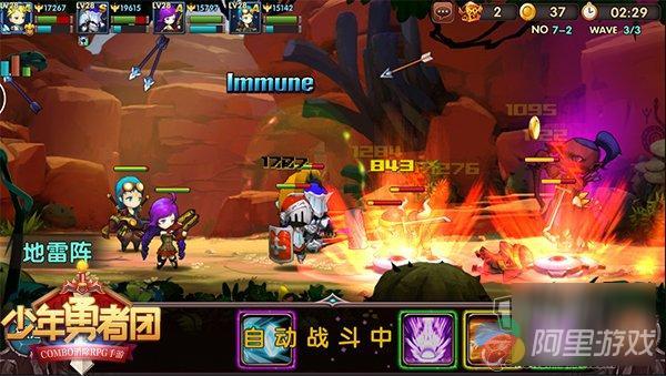 COMBO消除玩法是《少年勇者团》有别于传统冒险RPG游戏的一大特色。玩家在战斗过程中会根据卷轴式副本地图自动前进、普攻,想要带感连击则需点击屏幕下方的方块进行技能释放。当2个或3个相同方块相邻时即可触发连消,累计满SP值时,还可释放专属大招去制约敌方。这种无CD的新颖玩法,在快节奏的指尖操作下变得趣味横生,让萌新小白不明觉厉。