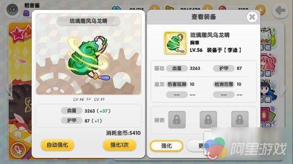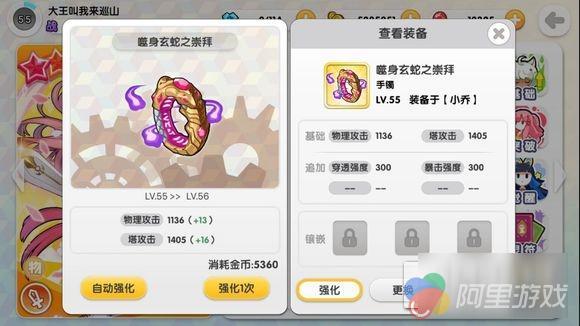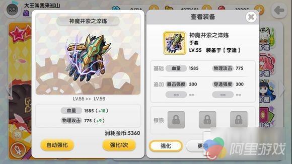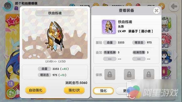 4.装备强化,同一位置同一色系的装备成长完全相同。出售后会多赚几千金币(全额+下一级强化所需金币返还),但是不会返还装备合成的钱,所以前期可以靠强化绿装再卖掉赚钱,但多余的紫装金装碎片就别手贱合成了。