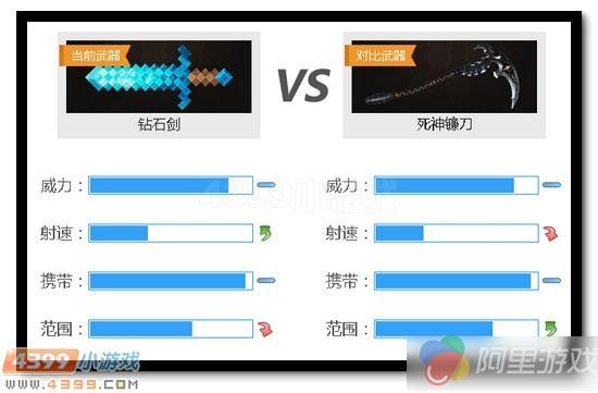 这是和死神镰刀的对比,死神镰刀的范围是非常大的,但是攻速是非常的硬伤,虽然重击的收刀速度很快,但是至于出刀速度嘛……用钻石剑的时候就要采用游击的战术,再对手重击间隙的时候攻击对方。