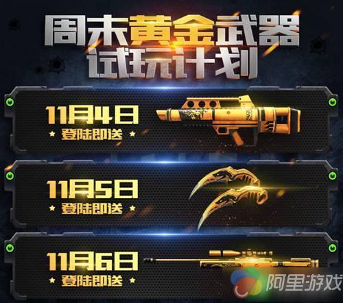 凡在11月4日至6日登陆游戏的玩家都可以通过邮件获得一件时限黄金武器!