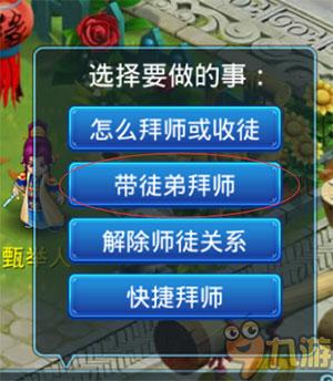 拜师需要师傅和徒弟组队前来,在贾举人处选择“带徒弟拜师”: