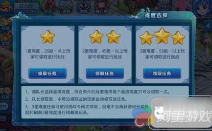 3星难度:每完成一环任务,都会获得大量的经验和银两,还有20积分,当完成第5环通关时,还会额外奖励一个3星礼包。