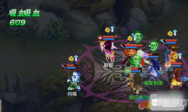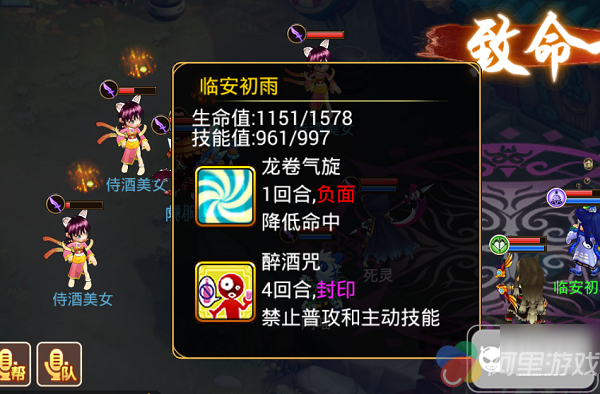 1.BOSS景阳冈酒家,施放醉酒咒,禁止普攻和主动技能,小怪施放龙卷气旋,降低命中。命中被降低不要慌,被封印不要慌,对面都是战五渣,轻松过~