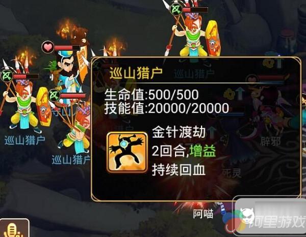 2.守山人,施放金针渡劫技能,给小怪回血,实力强挂机可过,也可以手动集火打死守山人,再解决他的小弟们。