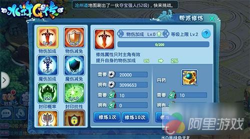 在帮派玩法中,玩家还可以获得更多的资源和战力的提升。例如玩家35级以后可以开启的修炼就能够对外增加各属性伤害,对内减免。每次2%复利式修炼方式意味着修炼越多,提升也越快。另外玩家还可以在帮派商城中购买宠物用品和星将用品,生活技能的各种采集是锻造装备的珍贵材料。