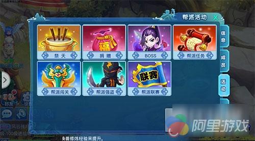 当然,在获得帮派带来的好处同时,也需要进行一定的建设。《水浒Q传手游》中的帮派任务多为轻松休闲,20级以上的玩家就可以接到巡逻、布置迷阵等帮派任务作为后勤建设,同时自己也可以获得帮贡、银两和经验奖励。此外,参加祭天、帮派捐赠、一起组团刷帮派BOSS等也能让玩家获得帮贡奖励。