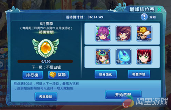 《水浒Q传》此次封测已经进入到后半段,各位水粉在水Q世界里闯荡了十多天,想必战力都已达到了一定的高度,是不是急需一个舞台来证明自己?巅峰排位赛正好就是这样一个检验自己实力的舞台!这是最具含金量的1v1比武场,也是对人物、星将、宠物及策略的综合大考验!巅峰排位赛今晚20:00正式开启,若想与各路好汉一决高低,那就快来试试吧! 【段位排行,见证王者】 巅峰排位赛每周三、六20点至21点开启,等级满55级的玩家即可参与。巅峰排位赛采用时下流行的段位排行制,总共有五个段位:青铜—白银—黄金—铂金—钻石,钻石段位几乎就意味着最顶尖的高手!排位赛为单人赛制,每场对决胜利后,玩家即可获得胜点,玩家累计够足够的胜点,就可进入下一个段位。