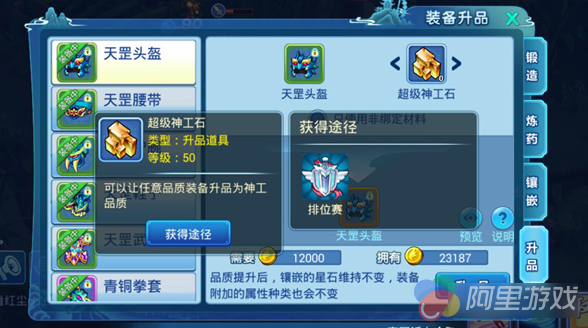 作为水Q手游中最有影响力的PK战场,巅峰排位赛产出的奖励也十分丰富!奖励不仅包括大量银两和金币,每升级一个段位可以获得相应的礼包(礼包内有宝宝卡、演武丹等珍贵材料),排位赛前50名的还可以获得更丰厚的奖励。更重要的是,这里还是神工装打造核心材料——超级神工石、超级传说石唯一的产出途径哦!