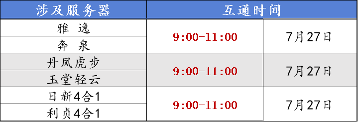 2、数据互通后,若有重名帮派,重名帮派自动加上服务器名作为前缀;如:[宝莲]帮派1