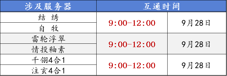 情投服本周五(9月22日)10:00上架合服狂欢活动,持续到9月28日凌晨5点结束。