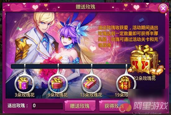 2)收集玫瑰后即可赠送好友,或赠送魅力排行榜上您心仪的玩家。赠送好友可增加双方亲密度,赠送非好友的玩家可增加对方的魅力值,以及您的玫瑰赠送积分。当积分达到指定数量时将有机会获得游戏周边抱枕、天赋高级装备宝箱、烈焰宝石等好礼!