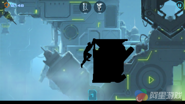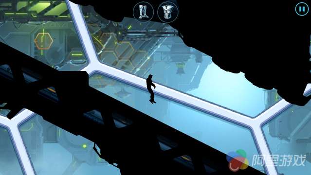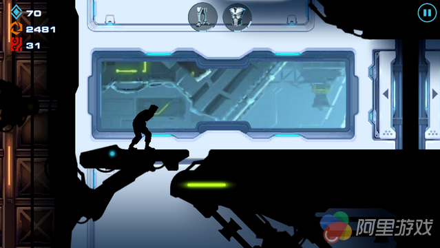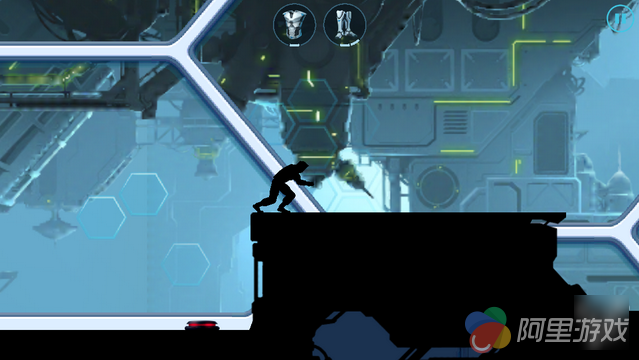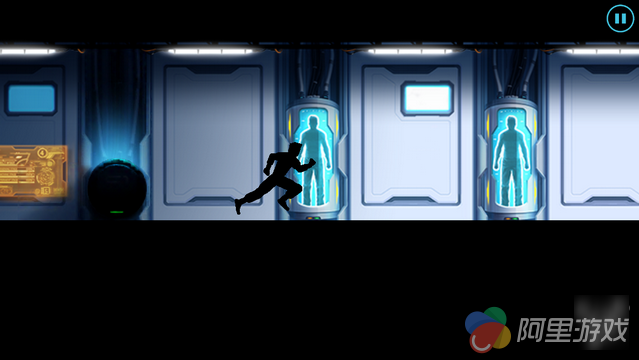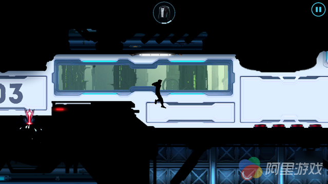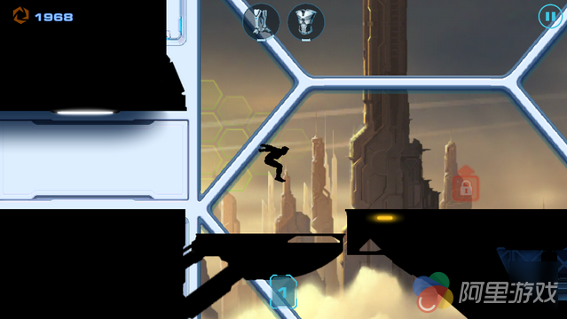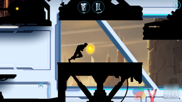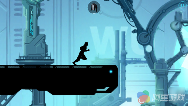 游戏在画面上,通过对跑酷场景的另类刻画,为玩家营造出了一种满满的科技之感,而于此同时,与画面配合相当默契的声光音效也为这种未来科技感增色不少。虽然说整个画面的多半区域都被黑、灰等颜色占据,但仅有的少量亮色还是发挥出了应有的效果,总体来说,音画方面契合度也很高,代入感也不错。当然,游戏最大的卖点依旧是主人公的“犹抱琵琶半遮面”,全程都以黑影形式存在的主人公无形当中为游戏增加了一丝神秘感。