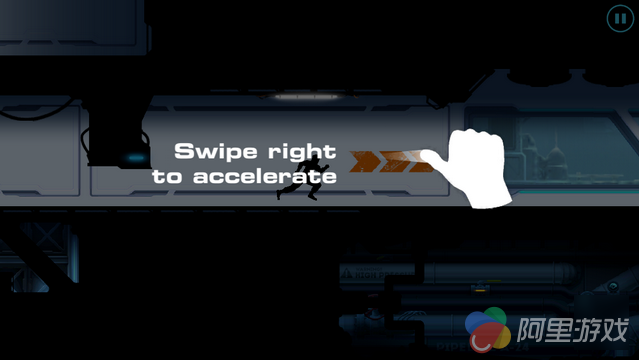 操作方面,由于是游戏是横版通关的设定,并且角色始终处于前行状态,因此玩家并不需要考虑水平方向的位置移动,而游戏中自然也忽略了这一点,除此之外,向上滑屏控制角色上跳,而下滑则能够让角色滑行前进,朝着屏幕右侧滑动两次则会给角色一个加速度,让其跑的更快。总的来说非常容易理解。