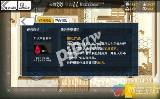 3、首先我们先要在主界面点击战斗然后点击模拟作战,训练资料的获得量会随着难度增加而提高。