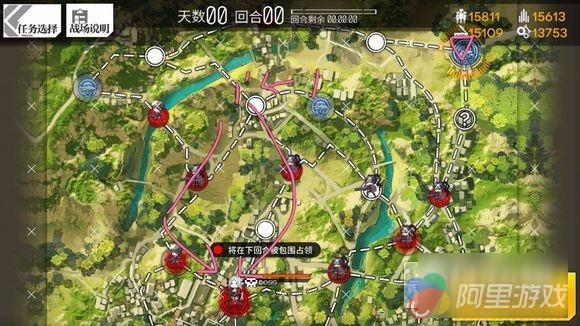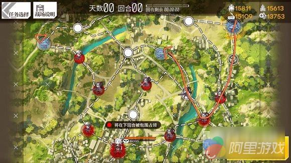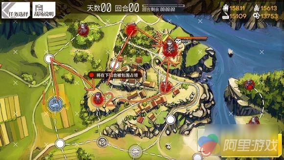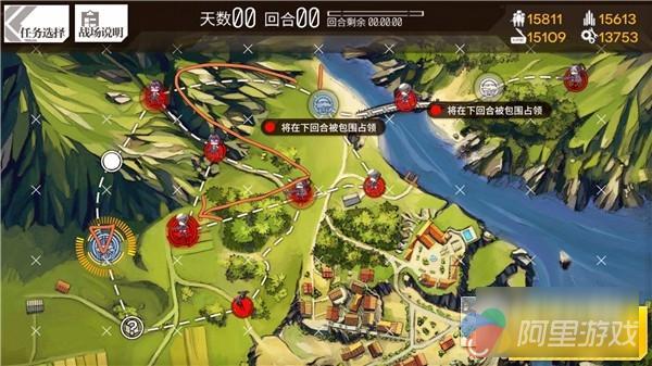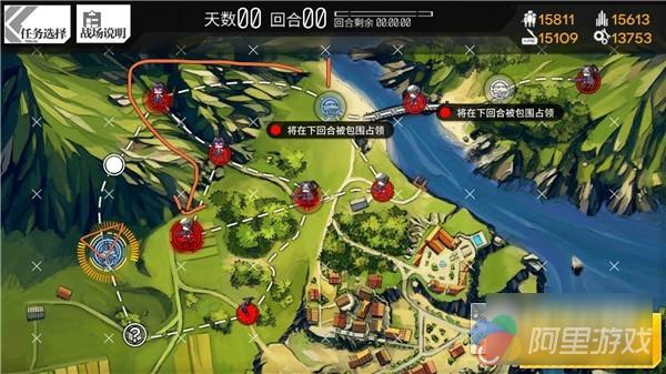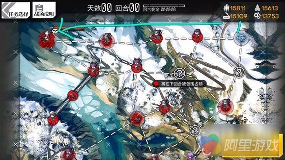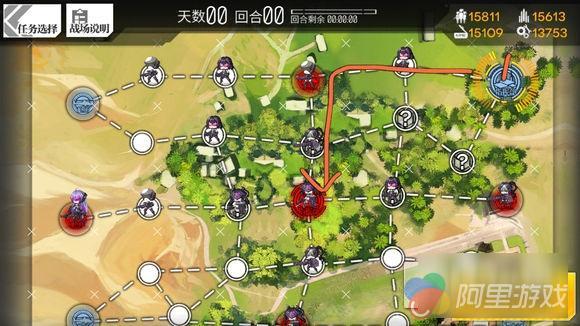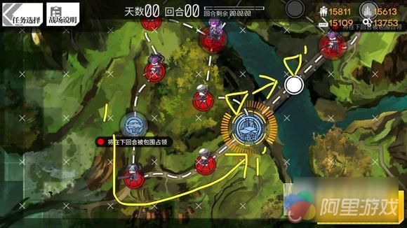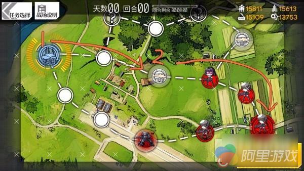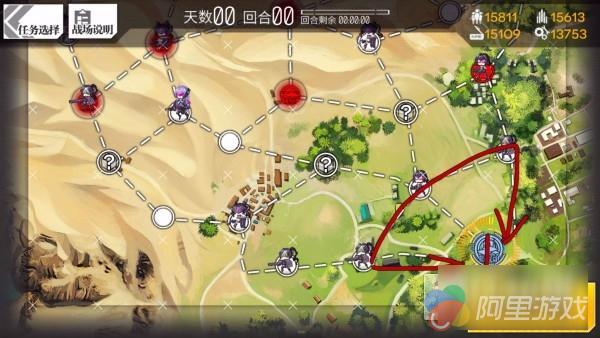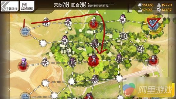 常规套路:指挥部放练级队,右下机场放酱油队。第一回合按箭头方向往左上打两战至1`,然后沿原路返回指挥部,之后撤退,再中指作战。