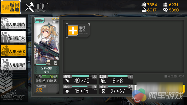 《少女前线》中的人形强化,投入新的人形可以提升想要强化的人形的属性值。