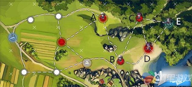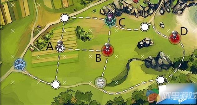 S攻略流程:第一回合第一梯队直接去C点消灭敌人,第二回合部署第二梯队,第一梯队向上移动到绿色的特殊据点,第三回合消灭剩余的敌人。