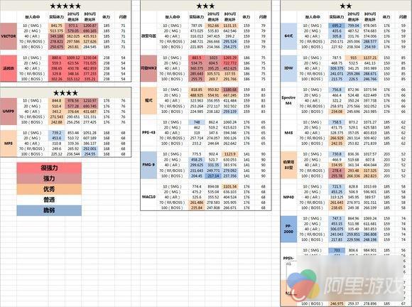 不同SMG的真正实力通过实际血量来直接比较,实际血量=面板血量/敌命中率。