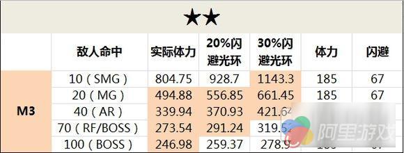 举一个例子做对照,面对40命中的敌人,闪避最高的FMG-9,需要再加一个40%的闪避光环,才和不加光环的汤姆森是同样的肉度。