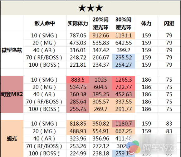 原因在于目前已有的SMG主要是3种:高闪避低血量,中闪避中血量,低闪避高血量。