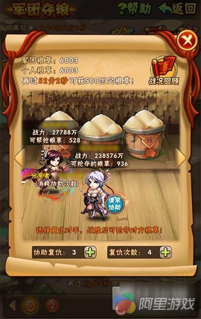 身处三国乱世,粮草对各位少年的重要性自然是不言而喻。《少年三国志》新资料片“百炼成金”重新制作了夺粮战系统并更名为“军团夺粮”,在每周二、四 12~20 点开启,65 级以上的玩家都可以参加。