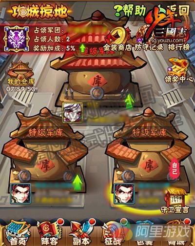 此次新版本中的核心玩法“攻城掠地”,是《少年三国志》首个战区日常PVP玩法。玩家可以战区为界,随时PK切磋竞技,通过争夺城池占据城中物资和元宝。