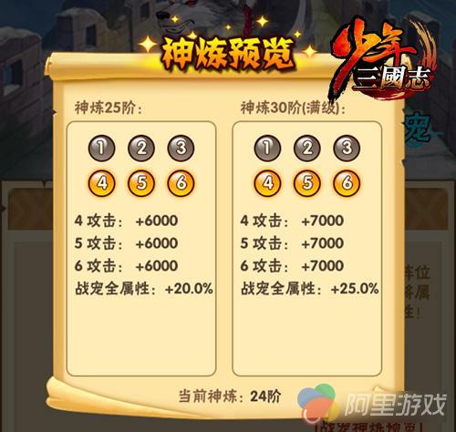绝影犬的神炼是为后排位置的武将提升攻击加成,神炼到高阶还可以百分比增加宠物的全属性!