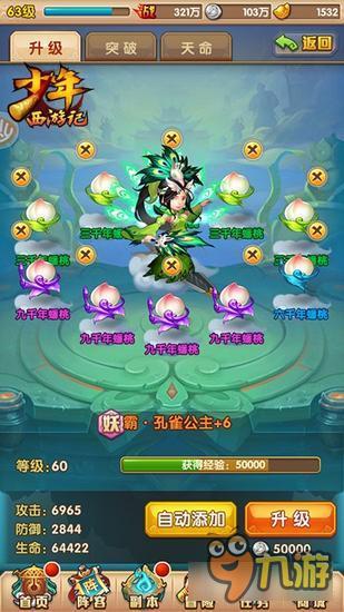 蟠桃获得方式较多,分为三千年、六千年、九千年蟠桃,提供的经验九千年的最高。升级时需要消耗一定的银两。