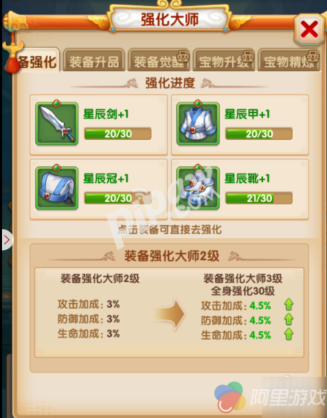 消耗银币可以小幅度的提升装备的基础属性,虽说提升不大但是等级高了之后也是不能小看的,毕竟上阵神将的所有装备加一加战力的提升也是很惊人的。