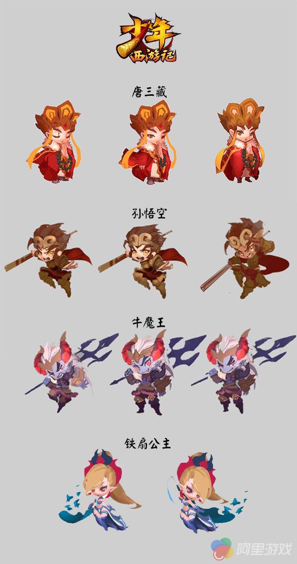 游族人气卡牌手游《少年西游记》Q版神将原画于今日正式首曝。此次曝光神将分别为少年唐三藏、少年孙悟空、少年牛魔王、少年铁扇公主。参与本次设计的美女原画师“塞子”表示,通过游戏原画的制作,可以顺利地将自己所知所想,以视觉形象呈现出来。