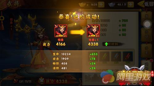 想来在《塔防三国志Ⅱ》中,大家最想要的就是金色武将,哪怕是红色武将也是可以接受的。但是招募的运气却很少那么好,所以培养一名红色甚至是金色武将只能靠自己。玩家可以通过消耗不同等级的进阶及其他相应卷轴来升阶武将,武将升阶后不仅能力会大幅提升,在升阶到临界点时更能够激发潜能,变身成为颜色品质更高的武将,超级武将自家培育!