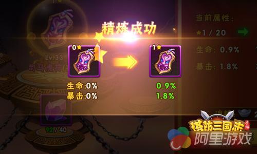 除了强化之外,蓝色品质以上的宝物还可以进行精炼,精炼能提升宝物星级,让宝物拥有更加强大的属性提升,甚至能让蓝色品质的宝物拥有顶级宝物的属性,实在是不容小视。当然,精炼宝物可不仅仅要消耗银两,更是需要辅以珍贵的精炼道具。为了能够让武将拥有更加强大的战斗力,主公们一定要多多收集积累精炼道具啊!
