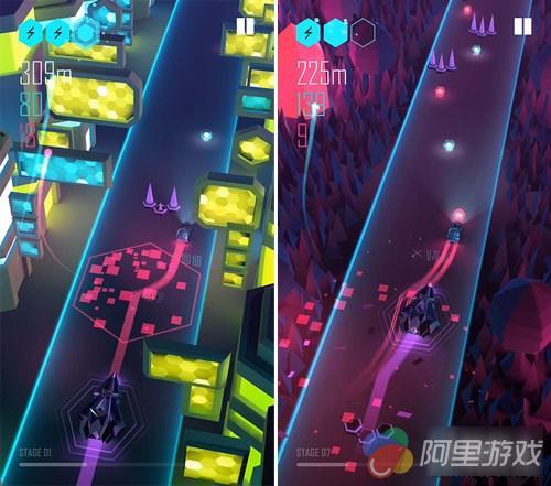 游戏画面带有强烈的科幻风格,在迷幻色彩中玩家可伴着节奏鲜明的音乐进行赛车游戏,在开车过程中需要不停躲避障碍物还需要收集六边形的 BEAT 。游戏里共有八段完整的音乐,请玩家们尽情享受节奏与速度的碰撞吧。——下载游戏