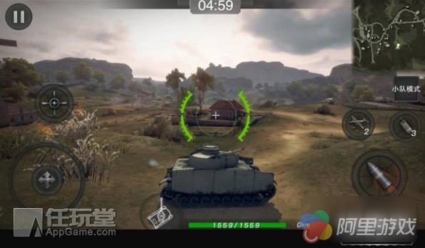 制作人:坦克作为一种特殊的射击载具,我们既想有比较好的代入感,又想保持简单易上手的操作模式,所以就设计了这样一种第一人称坦克射击的模式。在普通模式下,采用类似赛车游戏的追随视角,方便观察周围环境和自身状态;在微瞄模式下,采用FPS的开镜狙击视角,方便对远距离敌人实施精确打击。